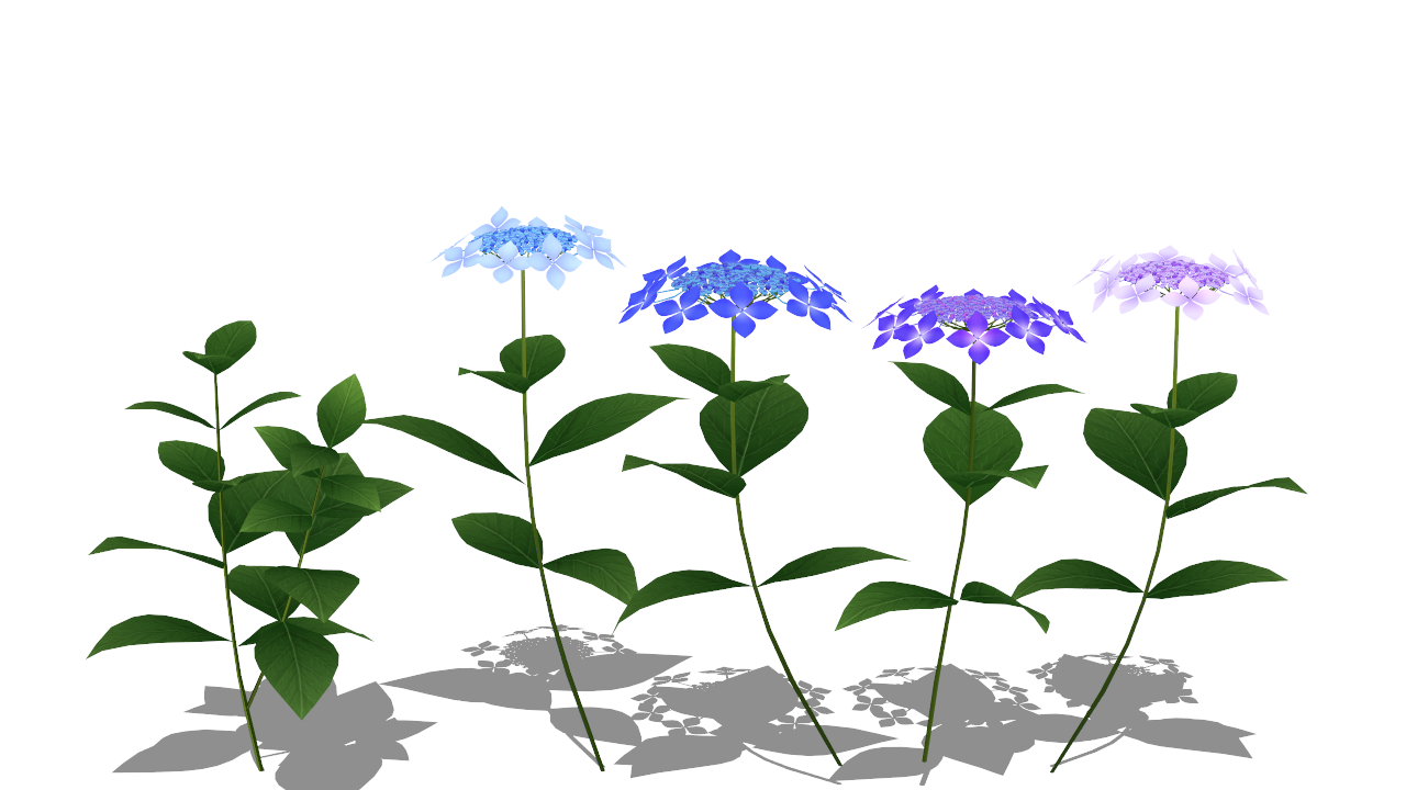 ヤマアジサイ配布 腐草蛍となる梅雨入りし、毎日不安定なお天気です。蒸し暑く、紫外線も強くて、日中外へ出るのも嫌になりますが、出かけるとあちこちで爽やかな紫陽花の花を見かけて少し嬉しくなります。ヤマアジサイは最近流行りの八重咲きや花の大きなものに比べると地味ですが、なんとも風情があり、野性味があるように思います。そんなヤマアジサイ(ガクアジサイ)のモデルを作ってみました。 明石国行モデル:ぱゆ様 スカイドーム:seasalt様 MME:おたもん様サイズ調整のモーフが入っています。心もとない足元を埋める用の葉のみの枝モデルも同梱しています。色などお好きに改変していただいたらよいと思います。このモデルはニコニコのコミュニティ http://com.nicovideo.jp/community/co2136800 で配布しています。