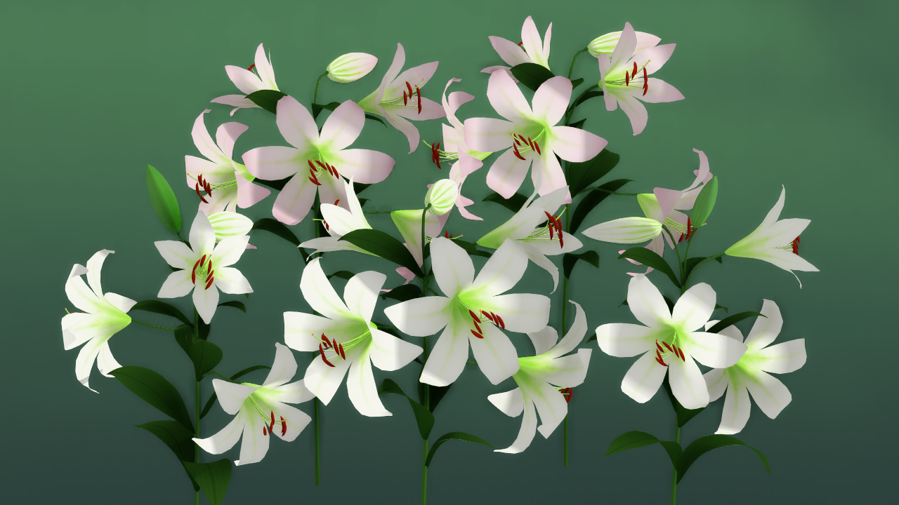 何か花のモデルを作りたくなり、好きな花のひとつ、カサブランカを作ってみました。カサブランカはわりと最近作られた品種であることを知って驚きました。また、ピンクのものはカサブランカとは呼ばないらしいです。