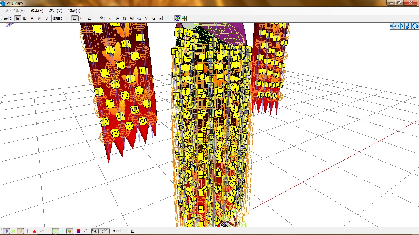 LMN式濃姫モデルについて ニコ動にアップした動画http://www.nicovideo.jp/watch/sm18409002 で使用している濃姫モデルについて (信長公の兜 :D(紅郎)様作 お借りしました) いくつかお問いあわせもいただいたのですが、現在は配布はしない予定です。待ってて下さった方がいらしたら、申し訳ありません。 なんとか配布できるように調整を重ねてきましたが、どうしても納得いくレベルに達していないというか、とても配布できるようなレベルではないと思うからです。 理由は大きく2つあります。 まずひとつは顔のポリ割がうまくいかないことです。メタセコからデータをPMDEditorに持ってきた時に四角の面が三角になりますが、左右対称に作った顔でもポリ割は必ずしも対称にはなりません。そしてそのポリ割によって顔にできる影が異なってきます。今回この影が気に入らず、ポリ割を弄っていると事態はますます酷くなるばかり・・・MMDにもってくると、照明やシェーダーの種類によってはすごく人相が悪くなってしまいます。 何と言えばいいのでしょうか、ちょうど薄~いブリキか何かでできていて、ほんのちょっと触るとペコっとへっこむような感じです。元に戻せばいいじゃないか、と思うでしょうが・・・上書きェ・・・ 二つ目は着物の物理演算がダメなことです。プラグインをお借りしてやってみたり、自己流に剛体を入れていったり、ジョイントの数値をあれこれ変えたりしてみたのですが、どうしても理想的な動きになりません。いっそのこと着物と足をひっつけてしまえれば着物はゴムのように伸びて膝上の破綻はなくなるのですが、スリットがあるし・・・ 足の突き抜けをできるだけ少なくするためガチガチのジョイントにすると、柔らかい布の動きは望めないし、一度突き抜けるとずっとそのまま・・・かといって着物だからそこまでフワフワにもできず、また突き抜けないように剛体をビッチリ並べすぎると今度は剛体同士がすぐに絡まってしまい戻らない・・・ なまじスリットがあるため、ジョイントの制限角もなんだかややこしいことに・・・ 自分なりに頑張ってみましたが、納得いく状態には到りません。 最近物理演算講座の動画を見ましたが、なんだか自分のやり方が根本的に間違っているのかも…と不安になりました。 裏ジョイントとか、もうちょっと気力がなくなってしまいました。 どなたか良いアドバイスがありましたら、是非お願いします。もう他力本願です。 動画をご覧になってある程度は踊れてるじゃないかと思われるかもしれませんが、最初のポーズが足の開きの少ないポーズから始まり、そこまで激しい動きでなければ耐えられます。でも、一度破綻したらやり直しがききません。踊りの途中からのシーンを録りたい時など本当に困ります。自分で動画を作っていてもとてもやりにくく、イライラしましたw あと、物理演算しない状態でもポーズをとらせるのにものすごく苦労します。肝心な、例えば正座とか、させたい姿勢がうまくできません。太腿丸見えです。ボーンをいちいち手で直さねばなりません。 こんな使いづらいモデルを配布するのはどうかと思いました。 私の勉強不足です。またやる気がわいてくるか、画期的な方法が見つかればやり直してみます。いつかは配布できればいいなと思っています。 半兵衛の武器の物理も滞っていて・・・すみません、ほんとに私物理が苦手です。 PR